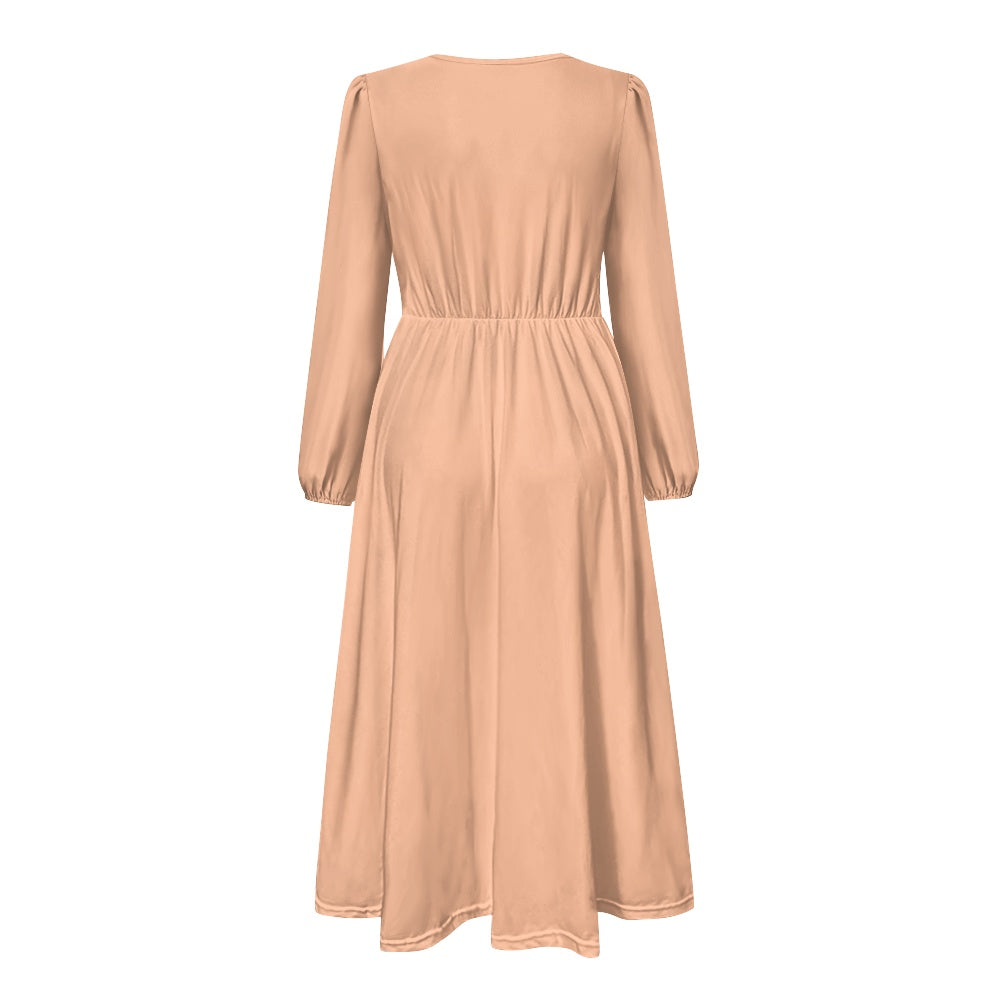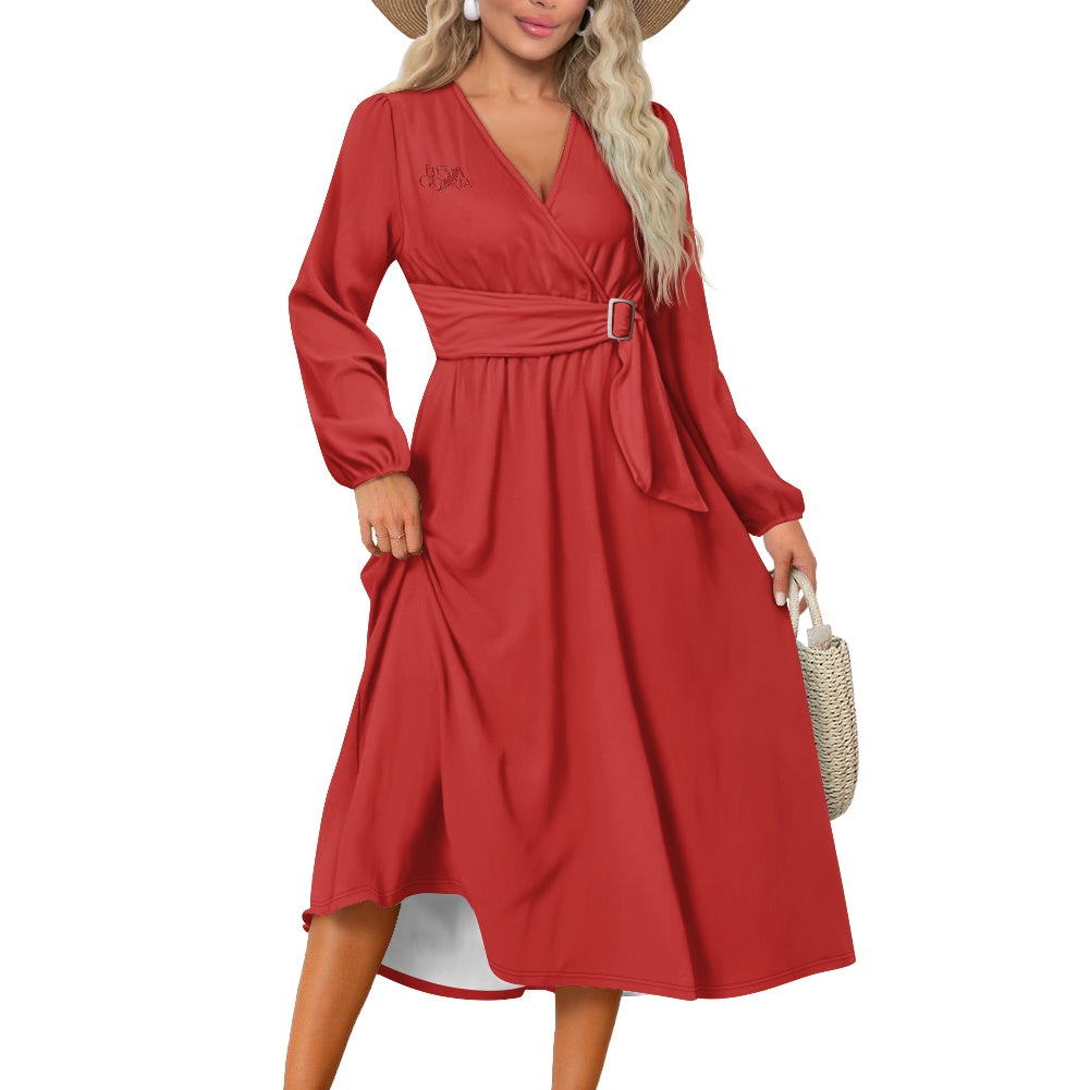 Sublimez votre style avec cette robe midi élégante, dotée d’un décolleté en V flatteur qui allonge la silhouette. Ses manches longues et sa ceinture à nouer offrent une coupe personnalisée et chic, idéale pour mettre en valeur la taille. L’ourlet délicatement froncé apporte une touche de fantaisie tout en conservant un look sophistiqué. Confortable et agréable à porter, cette robe midi est confectionnée en polyester et spandex pour une tenue fluide et un entretien facile. Parfaite pour le quotidien, le travail ou les occasions spéciales, elle deviendra rapidement une pièce essentielle de votre garde-robe.